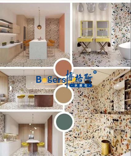 記憶力,水磨石大多被應(yīng)用于學院。醫(yī)院等大型建筑,原來的現(xiàn)澆水磨石工藝是將碎石、玻璃、石英砂等拌入水泥粘接混凝以后,經(jīng)過研磨,拋光的制品。但總是給人一種很普通的感覺。