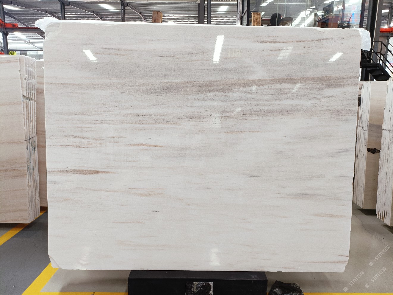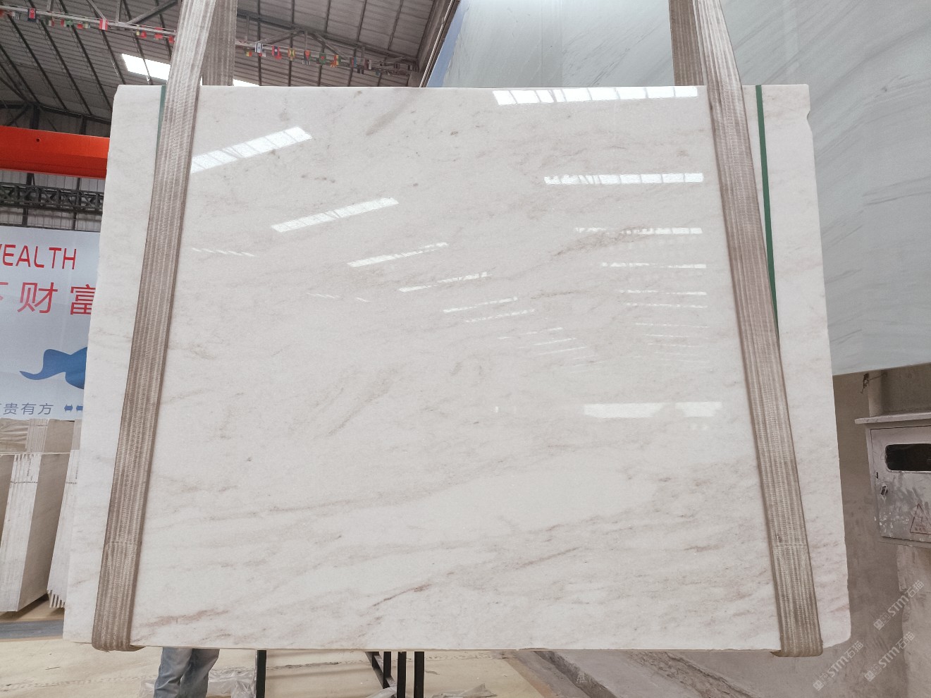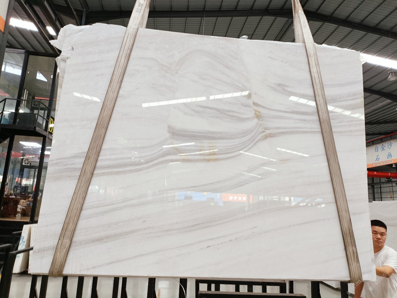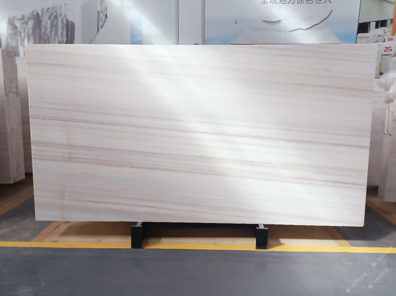 云浮站石材公司開發(fā)的歐亞白獨立礦山,專屬道路,礦口面積約 725 畝,證件齊全。今年礦口開采出直紋,亂紋優(yōu)質(zhì)大板材料,礦山采用單面墻平臺開采方式,10臺繩鋸、5臺鏟車、5臺勾機、一臺 30 噸叉車,共有職工40人,已有兩個開采平臺。礦山已開采多年,道路、設(shè)施都已成熟,現(xiàn)產(chǎn)能穩(wěn)定增長。品質(zhì)非常穩(wěn)定,一石兩面分別可以產(chǎn)出直紋和亂紋兩種紋路,材質(zhì)為細膩的玉質(zhì)品體。