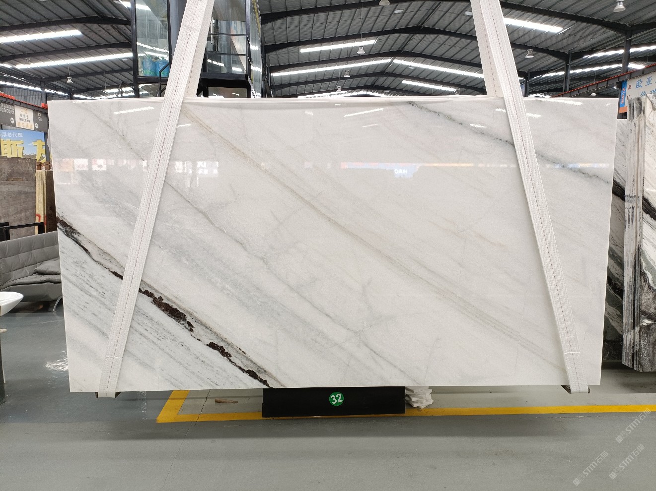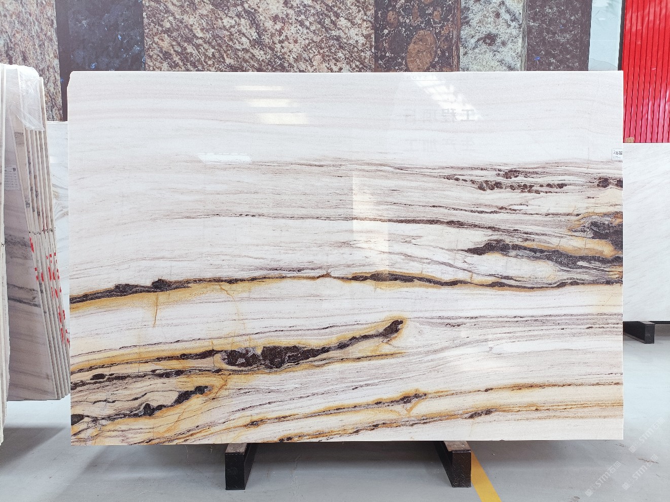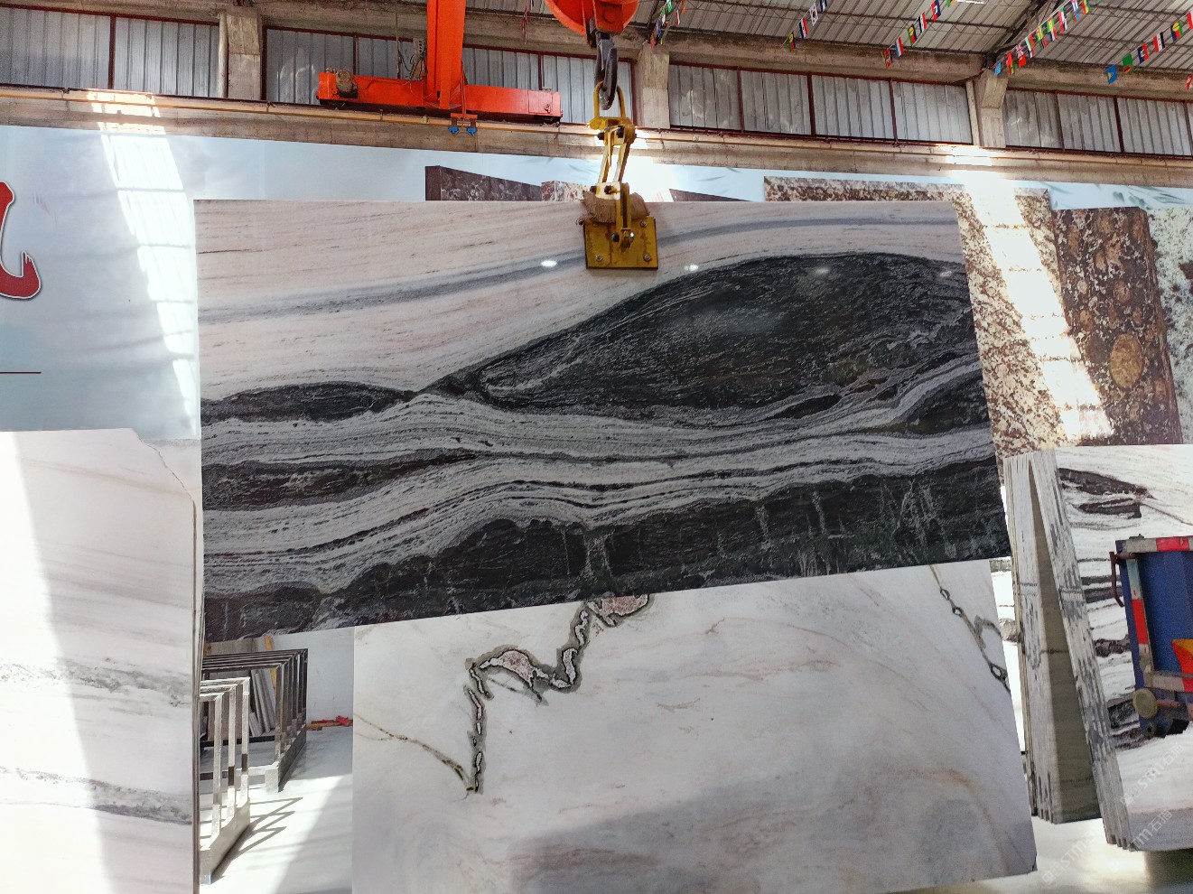 云浮站石材公司開發(fā)的歐亞白獨立礦山,專屬道路,礦口面積約 725 畝,證件齊全。今年礦口開采出直紋,亂紋優(yōu)質(zhì)大板材料,礦山采用單面墻平臺開采方式,10臺繩鋸、5臺鏟車、5臺勾機、一臺 30 噸叉車,共有職工40人,已有兩個開采平臺。礦山已開采多年,道路、設(shè)施都已成熟,現(xiàn)產(chǎn)能穩(wěn)定增長。品質(zhì)非常穩(wěn)定,一石兩面分別可以產(chǎn)出直紋和亂紋兩種紋路,材質(zhì)為細膩的玉質(zhì)品體。