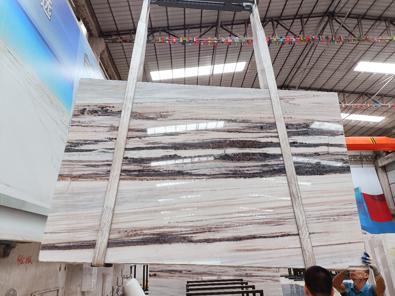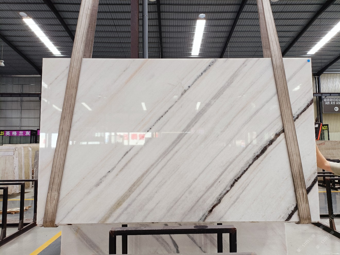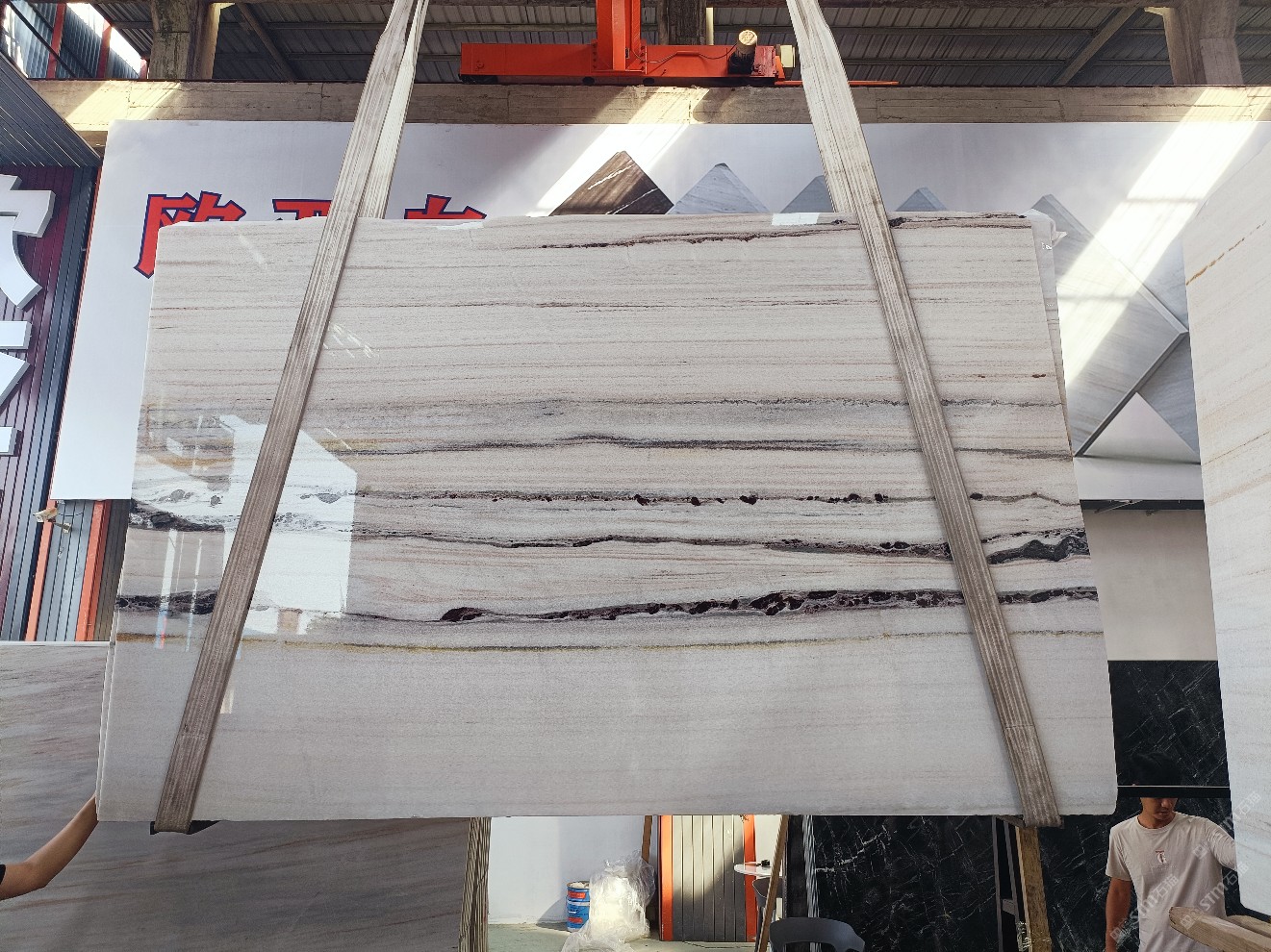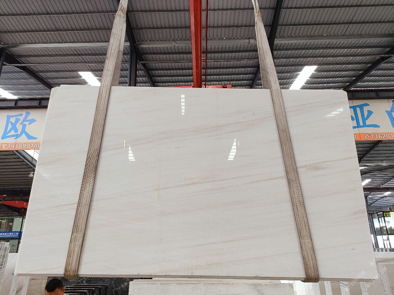 云浮站石材公司開發(fā)的歐亞白獨立礦山,專屬道路,礦口面積約 725 畝,證件齊全。今年礦口開采出直紋,亂紋優(yōu)質(zhì)大板材料,礦山采用單面墻平臺開采方式,10臺繩鋸、5臺鏟車、5臺勾機、一臺 30 噸叉車,共有職工40人,已有兩個開采平臺。礦山已開采多年,道路、設(shè)施都已成熟,現(xiàn)產(chǎn)能穩(wěn)定增長。品質(zhì)非常穩(wěn)定,一石兩面分別可以產(chǎn)出直紋和亂紋兩種紋路,材質(zhì)為細膩的玉質(zhì)品體。