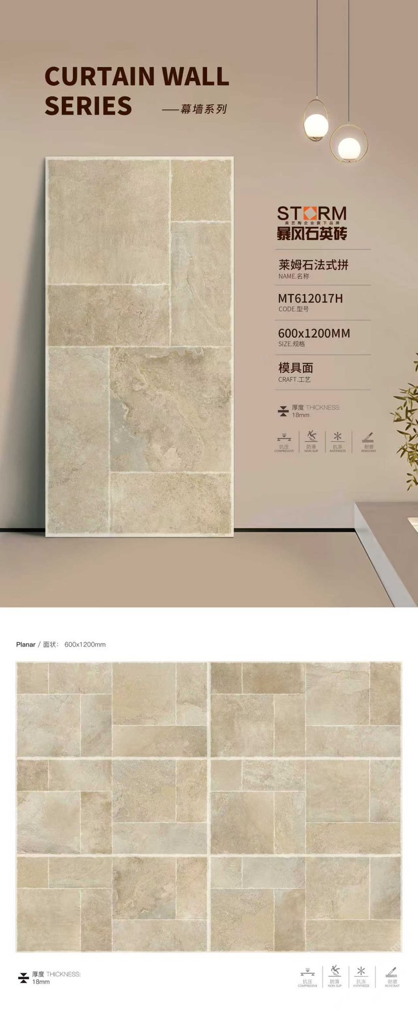 暴風石英磚是美藝陶(福建)高新建材有限公司旗下系列產(chǎn)品,專注研發(fā)和生產(chǎn)運用于戶外的石英磚產(chǎn)品,為商業(yè)建筑和高端住宅提供優(yōu)質(zhì)建材產(chǎn)品與應(yīng)用解決方案 。暴風石英磚精準定位為戶外用磚主營厚磚系列產(chǎn)品(1.2-3CM),并與2021榮獲“全國工程建設(shè)品牌”。\