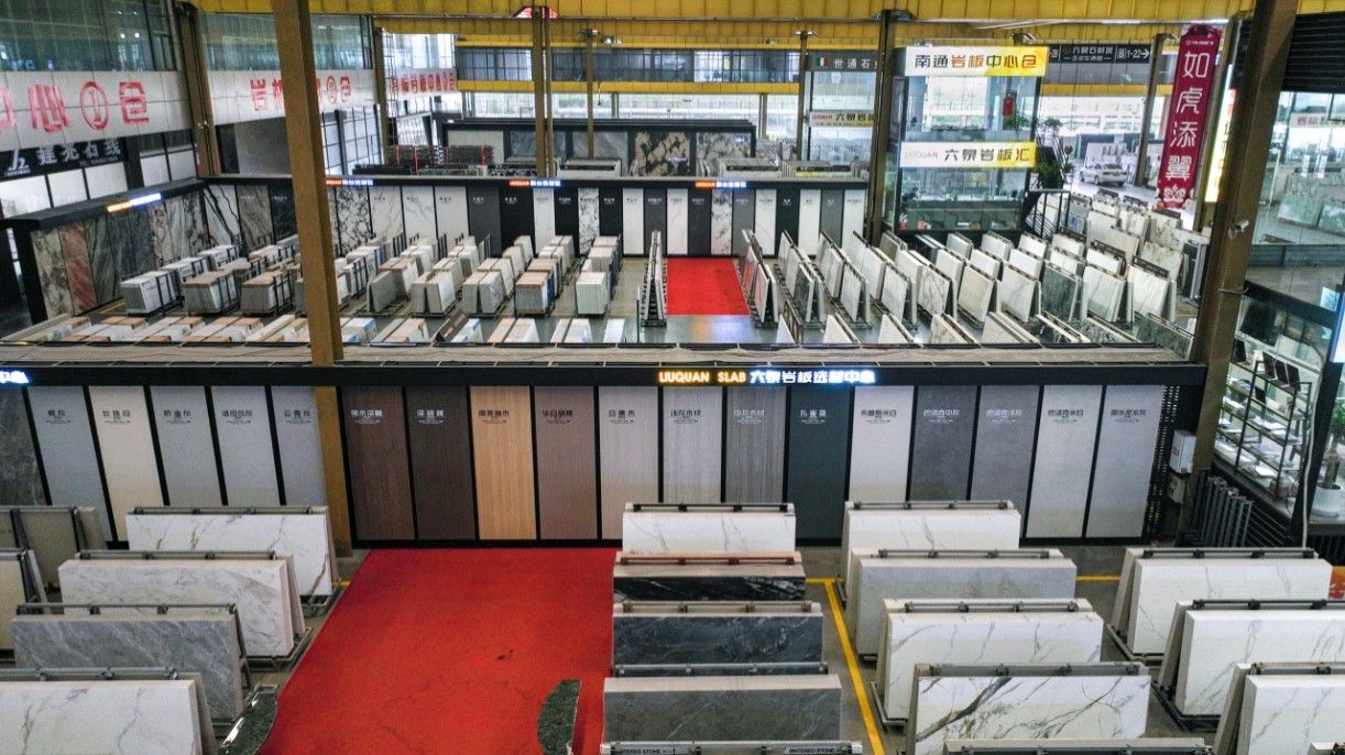 中國(guó)江蘇南通六泉石材城3號(hào)通道六泉巖板中心倉(cāng)