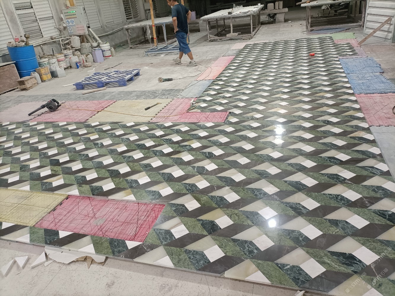 公司水刀拼花生產(chǎn)線:擁有6臺(tái)大型水刀設(shè)備,拼花年產(chǎn)量達(dá)10000多平方米。水刀師傅從業(yè)時(shí)間久,誠信務(wù)實(shí),質(zhì)量好!所生產(chǎn)的工藝拼圖暢銷全國及世界各地,是別墅建筑至善至美的選擇。