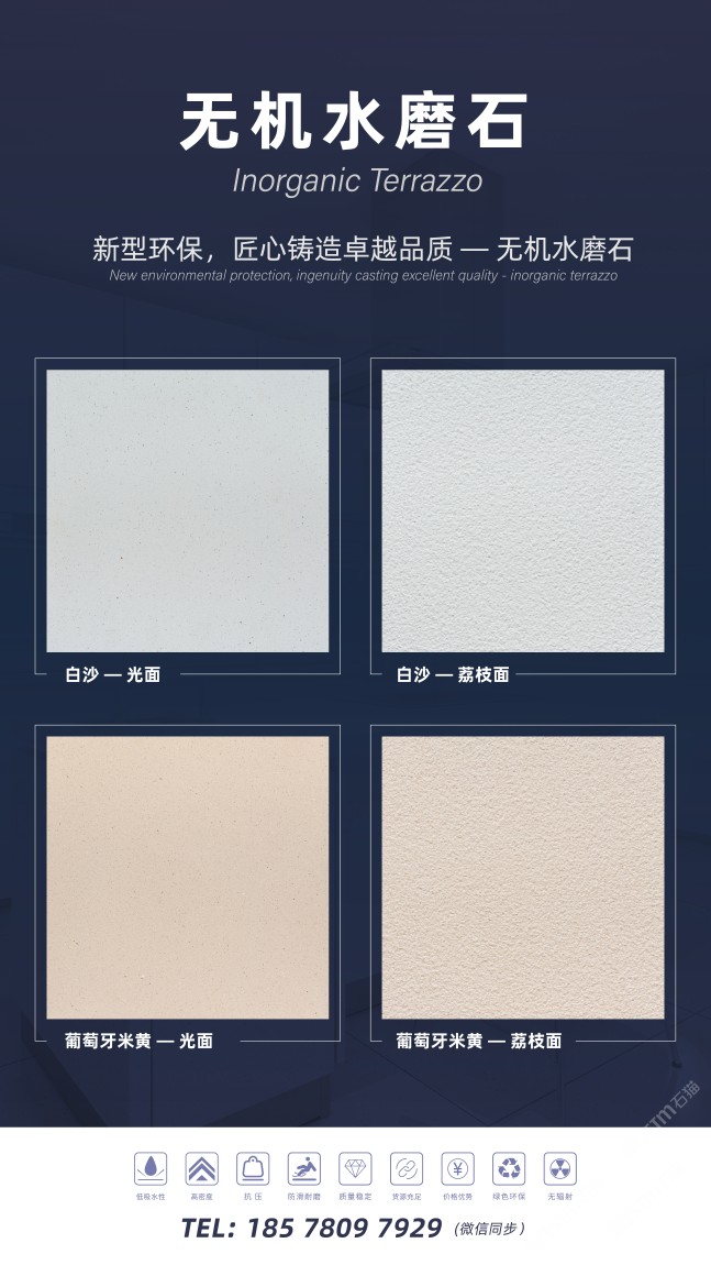 小石頭網(wǎng)絡(luò)科技有限公司自主研發(fā)的無(wú)機(jī)水磨石系列產(chǎn)品,目前提供兩種網(wǎng)紅款式:細(xì)顆粒無(wú)機(jī)水磨石,分為白沙米黃和葡萄牙米黃。這款水磨石密度高,適用于室內(nèi)外,無(wú)需擔(dān)心地面鋪裝出現(xiàn)返堿的問(wèn)題,而且黃金尺寸無(wú)需復(fù)雜排版,色彩保持一致。此外還可以根據(jù)您的需求,定制切割厚度,確保契合您的項(xiàng)目。產(chǎn)品性?xún)r(jià)比極高,歡迎隨時(shí)咨詢(xún)我們,我們還可以為您提供樣品,為您的工程項(xiàng)目多一個(gè)更好的選擇!