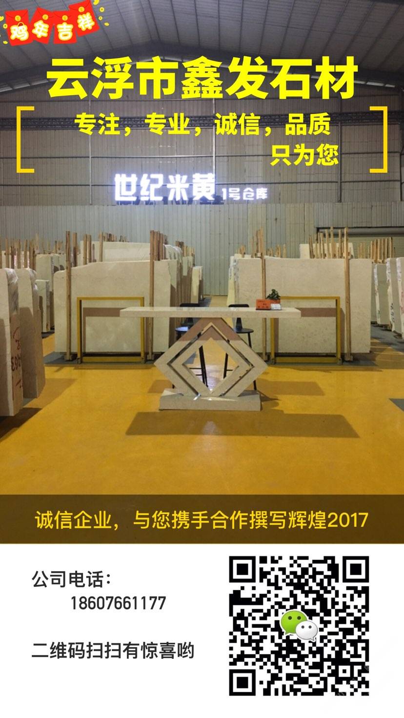 云浮市鑫發(fā)石材,是云浮地區(qū)一家世紀(jì)米黃專(zhuān)場(chǎng)。旗下有華盛達(dá)石材,鑫發(fā)石材工廠(chǎng),石在經(jīng)營(yíng),實(shí)在服務(wù)。以誠(chéng)信為本,品質(zhì)服務(wù)為中心,竭誠(chéng)為您的滿(mǎn)意不懈追求。