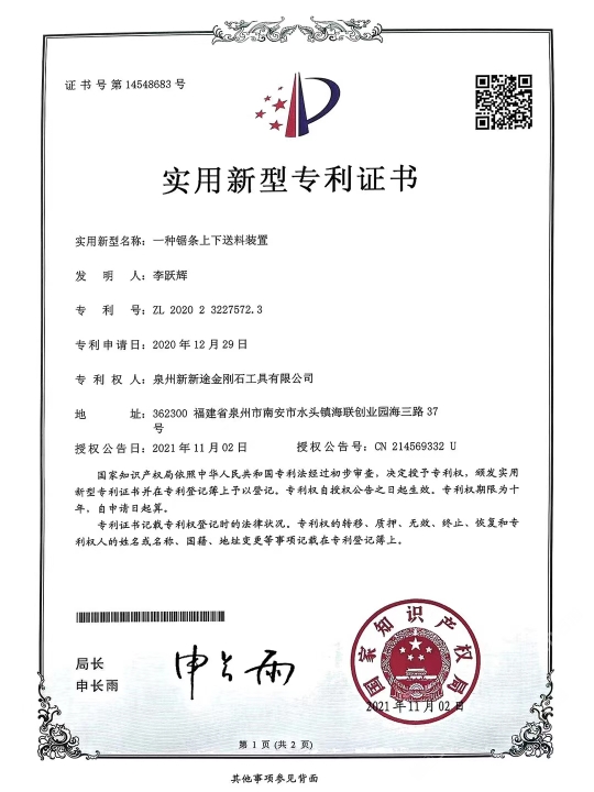 發(fā)布信息: 南安市新途金剛石工具針對目前大理石切割灰料難的現(xiàn) 狀,特別是“愛馬仕灰、瑪雅灰、意大利灰、露娜灰、閃 電灰、灰不灰、羅曼蒂克灰”等帶網(wǎng)格狀花紋、暗裂、孔 洞等切割隱患難加工的荒料,新途工具研發(fā)了一種不掉齒 的排鋸刀頭:“安全切割一切難加工的灰色大理石荒料”。 不單是刀頭鋸條特殊設(shè)計,更是結(jié)合了十多年的切割經(jīng) 驗,通過對機臺冷卻水及操作參數(shù)、退刀和出料等操作工 藝的改進(jìn),大大地提高了灰料切割的安全、高效。真正做 到了不倒料或少倒料。 作為長期穩(wěn)定的合作方,誠懇感謝:東升股份/遠(yuǎn)達(dá)石材/ 奧力石業(yè)/泉興隆石業(yè)/翰將石業(yè)/中發(fā)大理石/新容石業(yè)/寶 多龍石業(yè)/銳豐源石業(yè)/漢榮石業(yè)/超億石業(yè)/宗藝石業(yè)/尊龍 石業(yè)/正大石業(yè)/銘裕石業(yè)/正方石業(yè)/尚衡石業(yè)/捷成石業(yè)/振 南石/天正/描側(cè)石/率硬石上/仏期石/流中石上/灣源 石業(yè)/瑜興石業(yè)/豪闊石業(yè)/興業(yè)石業(yè)/萬華石業(yè)/振興石業(yè)/豪 聞石業(yè)/奧都石業(yè)/永光石業(yè)/明晟石業(yè)/加州(安固)石業(yè) 等等優(yōu)質(zhì)供應(yīng)商廠家(排名不分先后) 本公司秉承合作共贏,誠懇敬業(yè)的態(tài)度在石材加工切割領(lǐng) 域深度專研。歡迎廣大群體來領(lǐng)略新途。