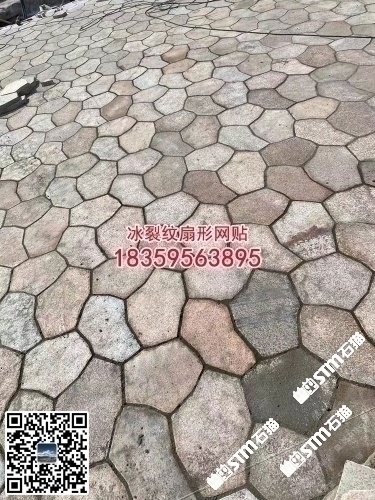 廈門工地黃銹石冰裂紋地鋪石扇形網(wǎng)貼六角磚亂拼碎拼石