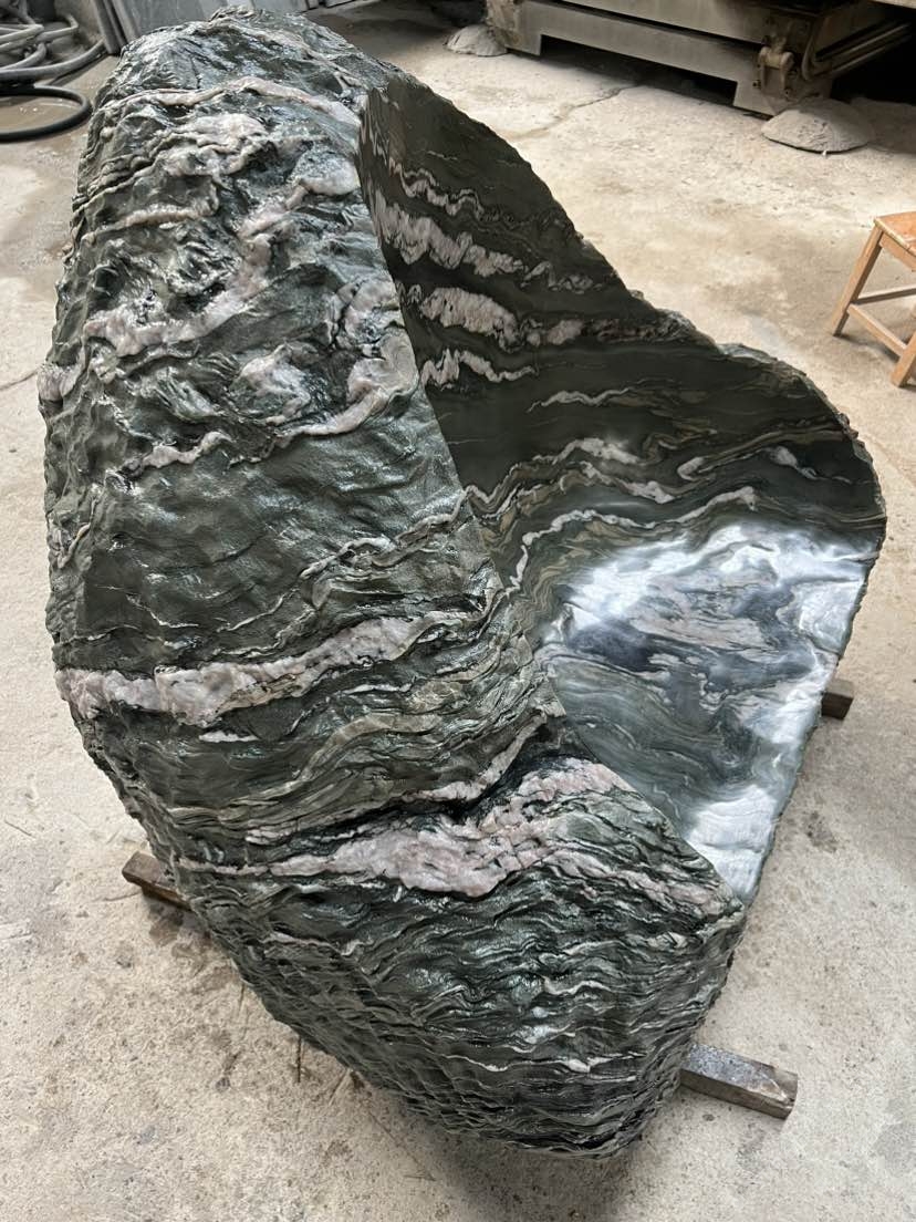 發(fā)布信息: 九龍玉整石座凳,綠底云紋如山水畫卷,隨形挖鑿的坐面,糙石肌理配柔滑觸感,往院里一放,坐下來就是“把山水揣進(jìn)日?!眫