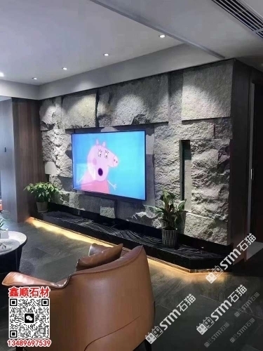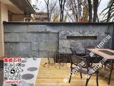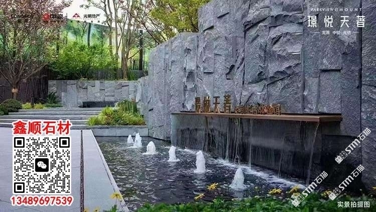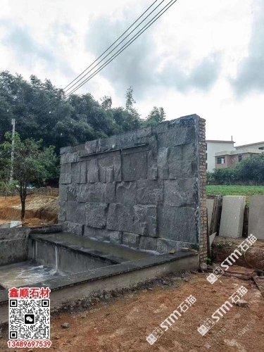 芝麻黑自然面背景墻流水石水景石材流水幕墻石皮背景墻