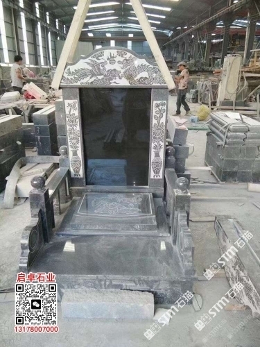 柬埔寨芝麻黑成品墓碑公墓墓碑套墓柬埔寨黑石中式墓碑