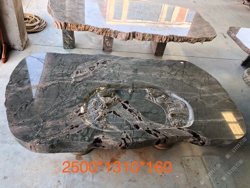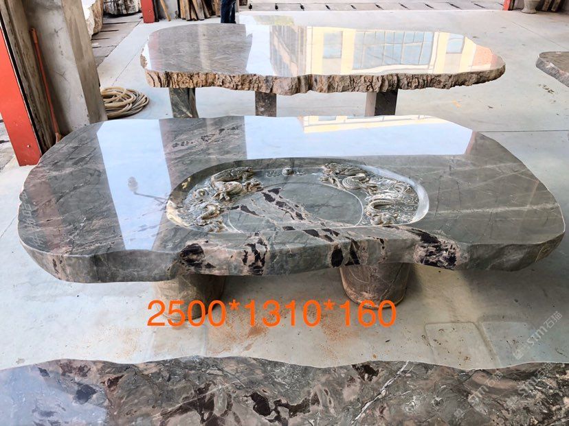 九龍壁石桌板凳-雕刻工藝大桌