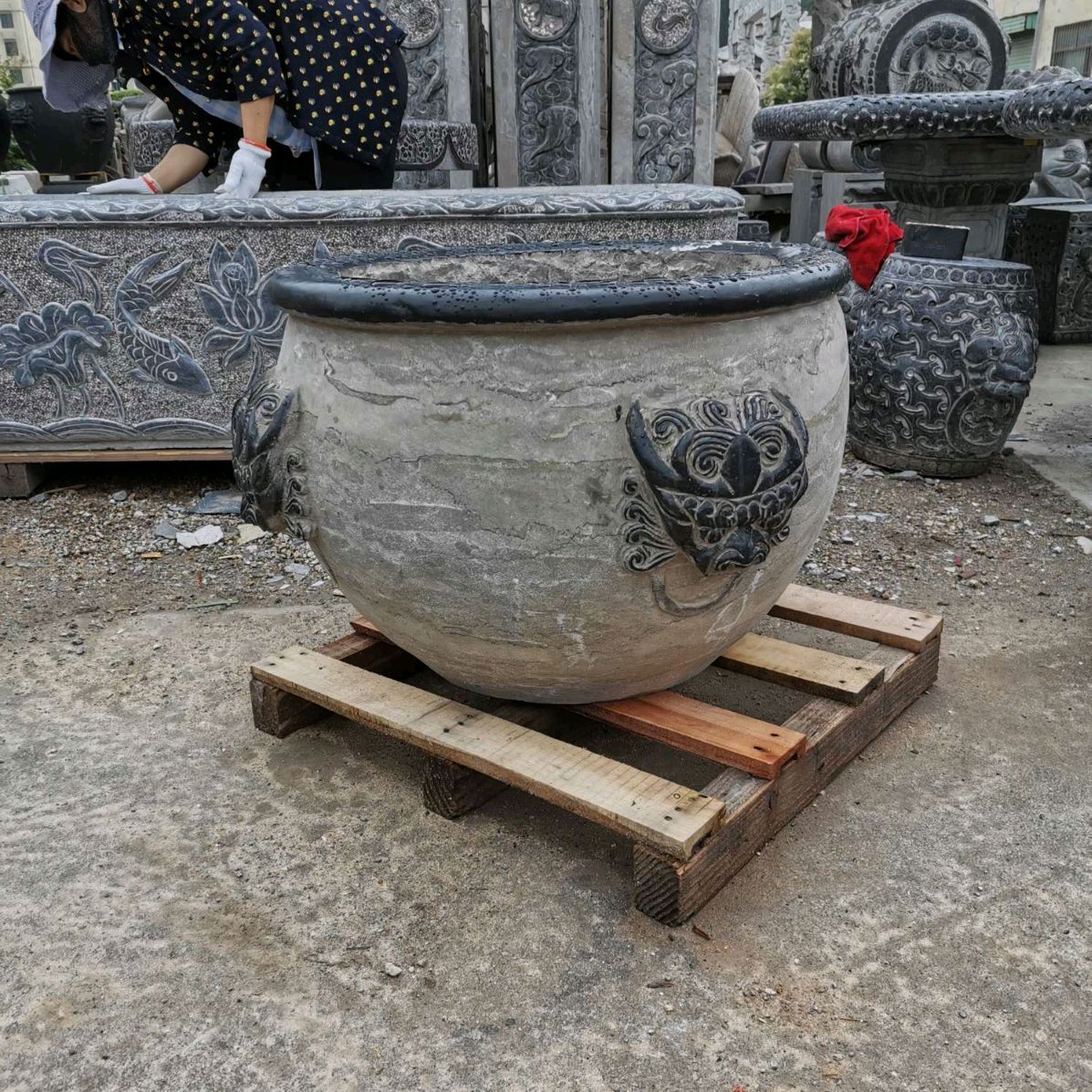 仿古青石魚缸聚寶盆,青石仿古石雕