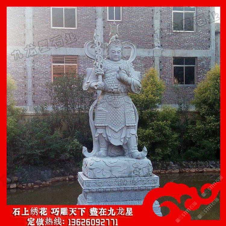 發(fā)布信息: 石雕韋陀菩薩金剛杵 石材韋馱菩薩像加工廠——九龍星石業(yè)。 石雕韋陀菩薩和石雕伽藍菩薩都是佛的護法神。韋陀菩薩為南方增長天王手下八將之一,也是四天王三十二將之首,是僧團、寺院及齋供之著名的護法神,職責是護法安僧。他將護持賢劫千佛中九百九十九尊佛出世,為他們做護法,是賢劫中一位成佛者,名樓至佛!而珈藍菩薩,「伽藍」是寺院道場的通稱,佛教伽藍神的代表形象。就狹義而言,指伽藍土地的守護神;廣義而言,泛指所有擁護佛法的諸天善神。依《七佛八菩薩大陀羅尼神咒經》所說,佛教伽藍神是保護伽藍(寺廟)的神。