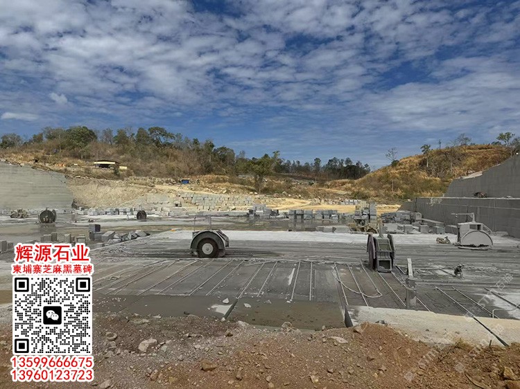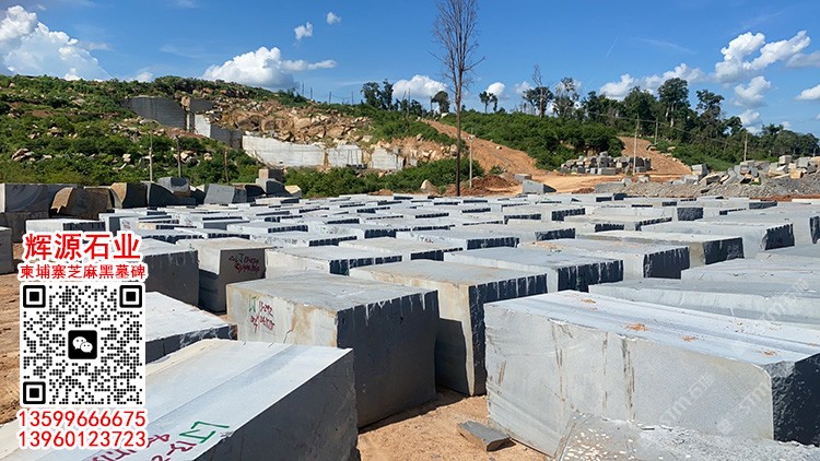 柬埔寨芝麻黑石材礦山直銷荒料充足墓碑石工程板路沿石