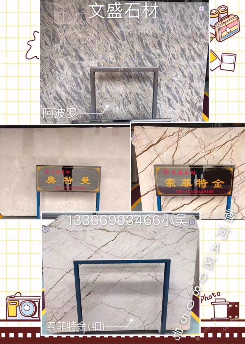 發(fā)布信息: 文盛石材主營:水晶淺啡,云多拉灰,閃電米黃,阿波羅,索菲特金,奧特曼,灰姑娘,爵士白,拿鐵灰,塞浦路斯灰,土耳其灰,。 聯(lián)系人:吳志煌。 電話 :13366993466。 地址:香河石材城A區(qū)0805號