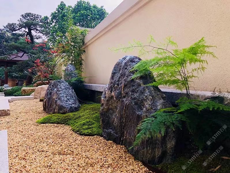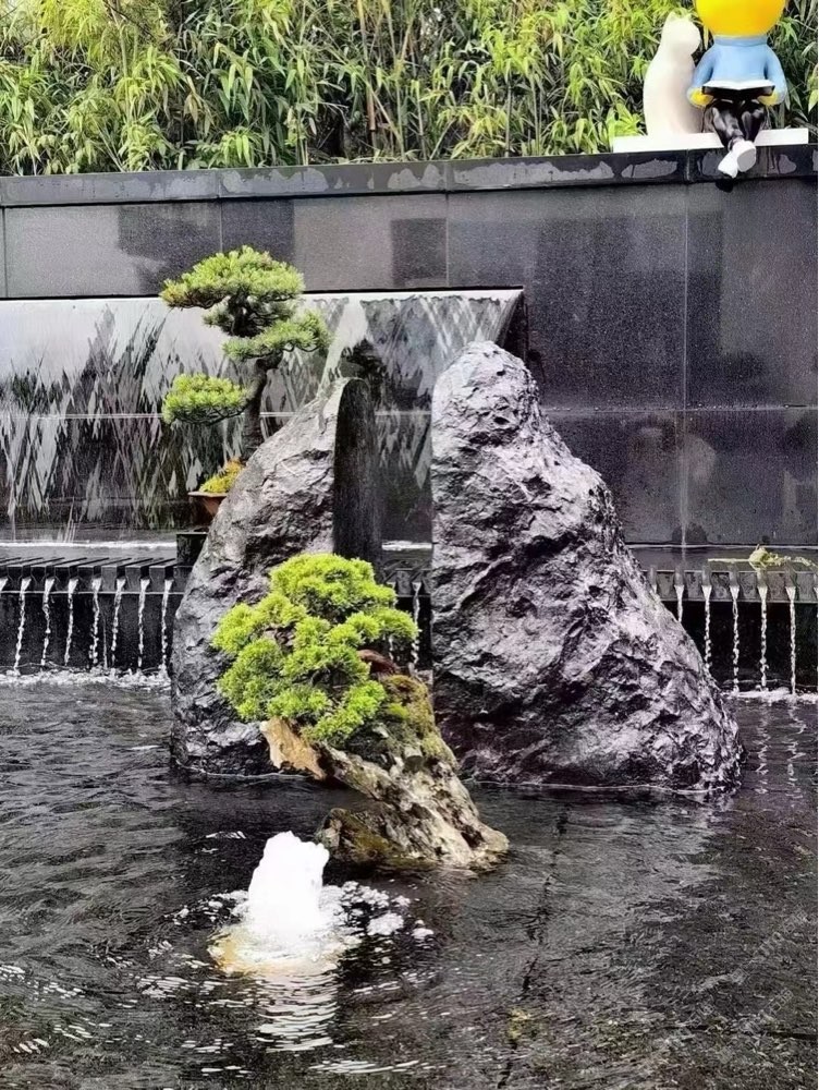 黑山石造景庭院假山流水效果