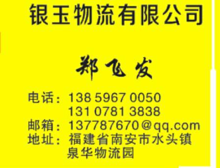 發(fā)布信息: 福建水頭(東方萬里物流)承接,福建---全國各地(整車 零擔(dān))和大件貨物運(yùn)輸。本公司自有車隊,價格合理,隨叫隨到,天天發(fā)車,歡迎來電咨詢!
