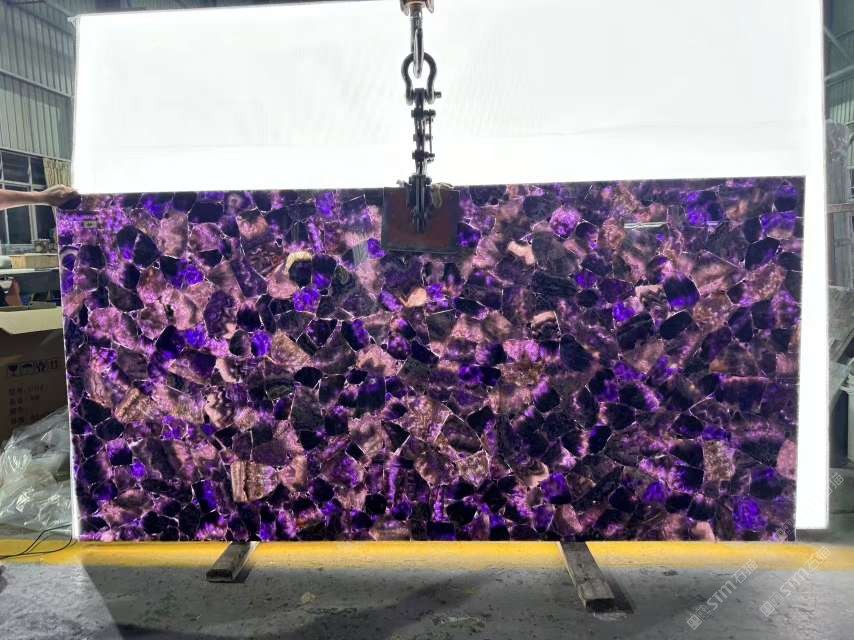 超美紫水晶透光寶石板,紫色發(fā)光石材,奢石