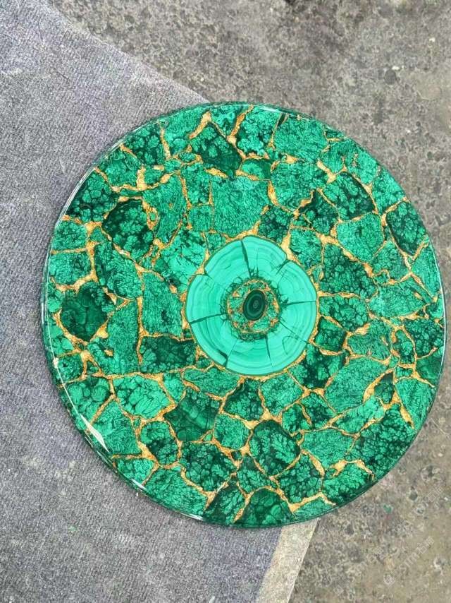 定制孔雀石加金箔款臺面,孔雀綠家具