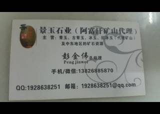 景玉石業(yè)主營(yíng)產(chǎn)品:阿富汗青玉,粉紅紫玉,粉紫玉,阿富汗白玉,冰絲白玉,波斯白玉1,白玉3,黑龍玉,古典玉,白金沙企業(yè)地址:廣東云浮云浮市云六公路大興混凝土向前200米